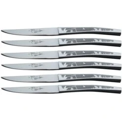 Coffret 6 Couteaux De Table De Thiers Inox Forgés Décor Chasse