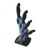 Ce set est très original et complet, les lames sont en acier inoxydable avec un revêtement anti-adhérent, manches ergonomiques pour une bonne prise en main, motif « façon pierre ». Ces couteaux ont des lames affutables, avec un affûteur support chevalet aimantée.
