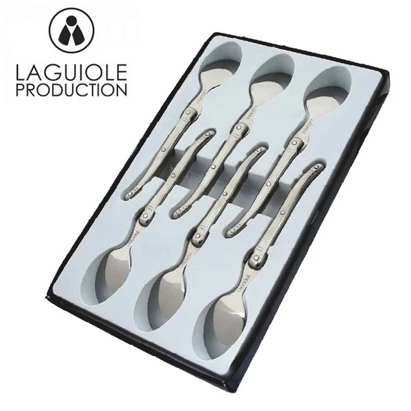 Ce coffret de six cuillères à café de marque Laguiole ® Tribloc apportera du charme à votre table, ils sont entièrement fabriqués d’acier inoxydable. Ces cuillères à café pourront servir pour toutes occasions, lors du dessert par exemple, elles s’accorderont avec toutes vos décorations. Cet alliage étant très solide et de bonne qualité, elle sont résistantes au lave vaisselle et facile d’entretien, vous pourrez les utiliser au quotidien.