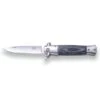 Ce couteau pliant pour la chasse de conception italienne Ă ouverture automatique possède une lame de coupe Ă ressort en acier inoxydable et un manche en palissandre Ă double mitre en laiton. En position fermĂ©e, la lame et la mitre de ce couteau automatique se plient sur le manche, un procĂ©dĂ© de sĂ©curisĂ© empĂŞche le couteau de s’ouvrir tout seul dans la poche.