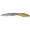 Ce couteau pĂȘcheur est Ă©quipĂ© d’un manche profilĂ© selon le design Laguiole est fait en bois de palissandre trĂšs robuste terminĂ© par une double mitre en laiton.