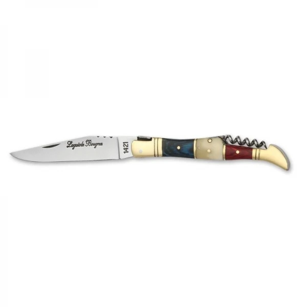 Couteau de poche Laguiole RĂ©publicain avec tire bouchon, manche bleu, blanc, rougeÂ