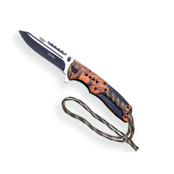 Ce joli couteau tactique automatique est doté d’une ouverture automatique, assistée par ressort pour une ouverture à une seule main. Sa lame est verrouillable, elle mesure 9 cm et est en acier inoxydable noir et chrome. C’est un couteau de poche qui mesure 11.5 cm plié, il est très pratique et maniable.