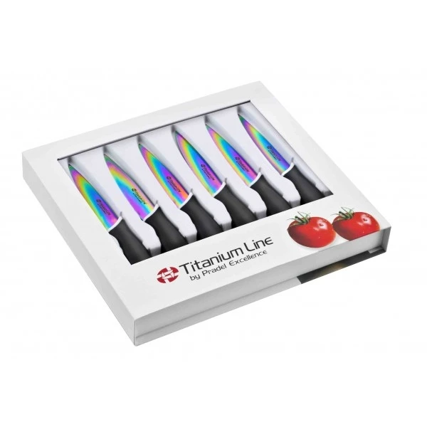 Ce coffret de sublimes couteaux de table en titane est une bonne idée cadeau pour le plaisir d’offrir ou de recevoir.