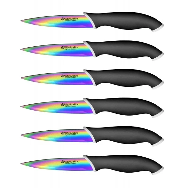 Tous ces couteaux à steak ont un tranchant lisse et de longue durée, les couleurs extraordinaires de la lame offrent à ces couteaux un superbe aspect irisé.