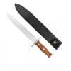 Le grand couteau est quant Ă lui conçu avec une lame fixe de 21 cm, un manche en bois d’olivier de 12 cm, une garde de 7.5 cm et une mitre de 4 cm en laiton. La lame est aussi très large elle mesure 4 cm, elle est très robuste avec un tranchant asservi, il est idĂ©al pour des tâches plus rudes, c’est aussi un couteau très utile pour dĂ©broussailler ou couper des objets de grande dimension.Â