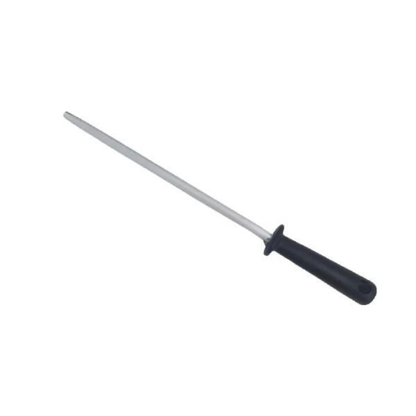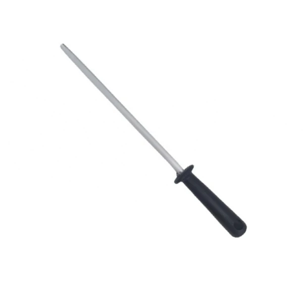 Ce fusil à aiguiser est destiné à un usage professionnel et particulier. Sa lame mesure 25 cm, elle est en acier de haute qualité, sa forme est ronde. Cette forme permet un aiguisage optimal, servant d’affiler en conservant le fil des lames de couteaux. C’est un ustensile de cuisine recommandé pour affûter les lames un peu meurtries, mais qui n’ont cependant pas révolu le fil, afin d’éviter qu’elles ne s’abîment dans le temps. Son manche est en ABS et doté d’un trou pour le suspendre.
