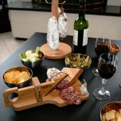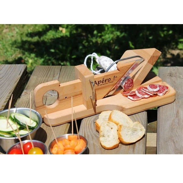Cette guillotine à saucisson est une idée géniale lors de vos apéros entre amis. Elle vous permettra de découper aisément en un seul geste, vos saucissons ou autres saucisses quelques soit leurs épaisseurs (saucisse sèche, chorizo, lomo...).