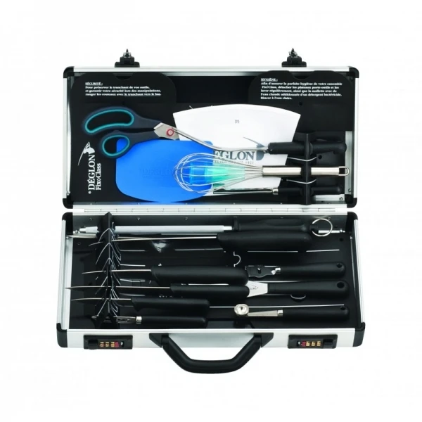 Mallette de cuisinier Campus marque Déglon 19 couteaux et ustensiles de cuisine indispensables en école hôtelière