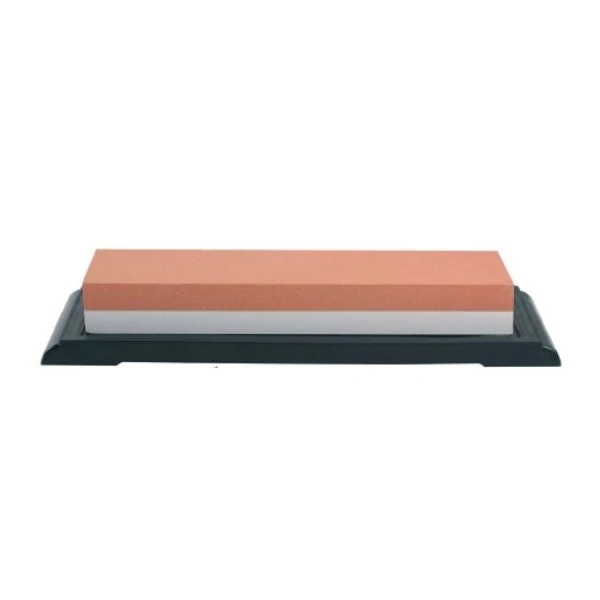 Cette pierre à aiguiser japonaise de haute qualité, dimensions 24 x 7.5 cm x 3.5 cm, surface utile 20 x 5 cm, est dotée d’une face grain fin (360) et d’une face grain extra fin (1000), outre la finesse de ces grains, la qualité de l’agent liant utilisé est primordiale, c’est lui qui assure la bonne tenue de la pierre lors de l’aiguisage. Un couteau avec un bon tranchant permet une coupe précise et évite d’écraser la nourriture, ainsi les arômes ne se perdent pas. Vous pourrez utiliser cette pierre à aiguiser en milieu humide, à l’eau, le socle en caoutchouc permet le maintien pendant le travail. Livré dans sa boîte de rangement avec une novice d’utilisation.