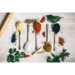 Cette jolie planche à découper en verre trempé d’une dimension peu commune de 52 x 30 cm, est d’un design très soigné avec un décor composé d’épices sur fond marron.