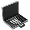Cette sacoche couteaux de cuisine est composĂ©e de sept couteaux de cuisine de haute qualitĂ©, tout en acier inoxydable. Les lames sont d’une Ă©paisseur de 2 Ă 2.5 mm selon le modèle pour une coupe, dĂ©coupe parfaite de tous vos aliments.