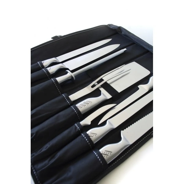 Cette sacoche du chef composĂ©e de 9 couteaux-ustensiles du chef de haute qualitĂ©, tout acier inoxydable, marque Pradel Excellence pourra vous permettre de disposer d’un beau lot d’outils pour cuisiner, qui vous serviront au quotidien. Du couperet au couteau d’office, en passant par le couteau à pain ou le cĂ©lèbre couteau de cuisine, sans oublier un fusil pour aiguiser tous vos ustensiles.Â