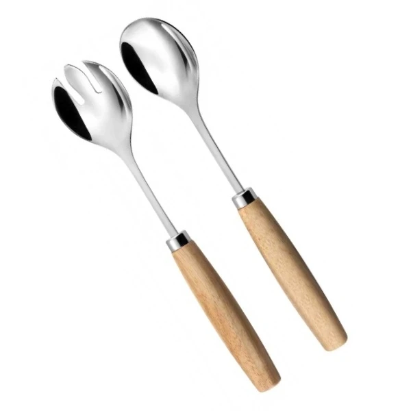 Ce service de 2 couverts à salade est composé d’une grande cuillère et d’une grande fourchette idéal pour retourner et servir de la salade. Les manches sont en bois et la base en acier inoxydable. C’est un service très moderne qui se marie entièrement avec tous vos récipients ou saladiers.