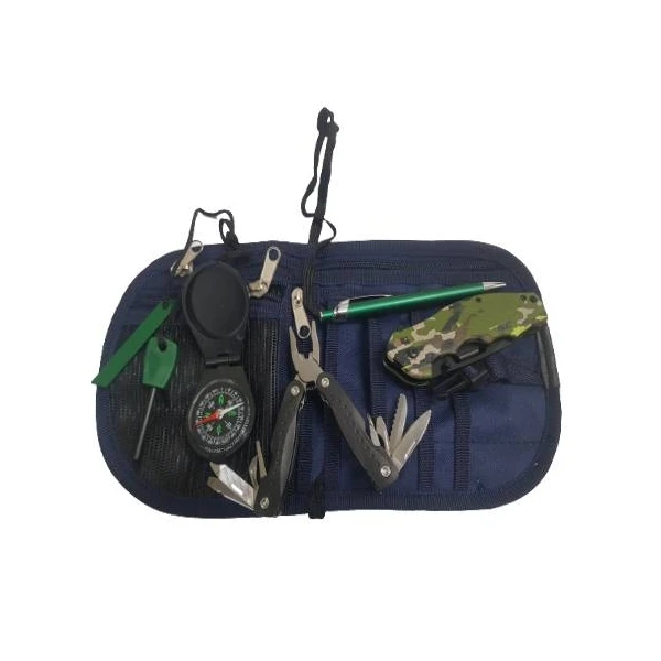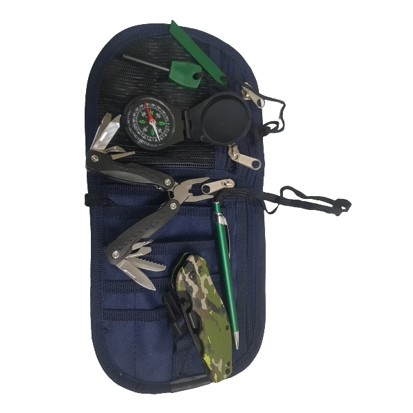 Ce kit de survie est un ensemble d’outils et d’accessoires très utiles lors de sorties en extĂ©rieur. La trousse est dotĂ©e d’un large passant pour ceinture.