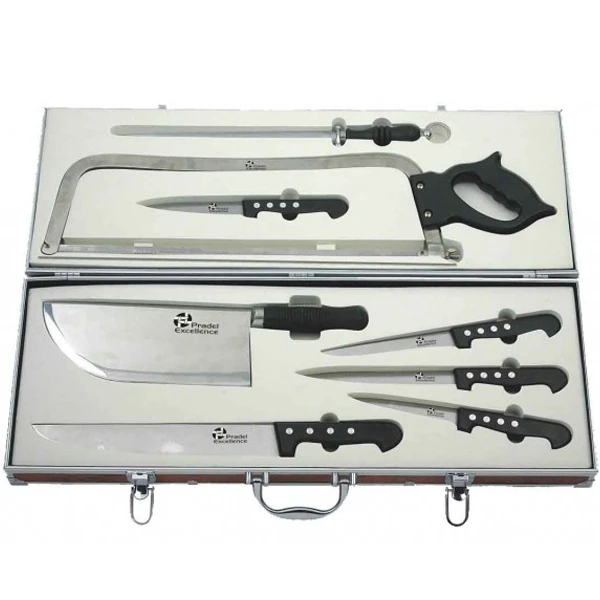 Avec cette valise du boucher garnie de 9 pièces de qualitĂ© Pradel Excellence, vous disposerez de tous les ustensiles de cuisine nĂ©cessaires Ă la prĂ©paration des viandes, volailles et gibiers. D’un excellent rapport qualitĂ©-prix, cette valise de boucher est un beau cadeau Ă offrir Ă un jeune apprenti boucher ou Ă un cuisinier aguĂ©rri.